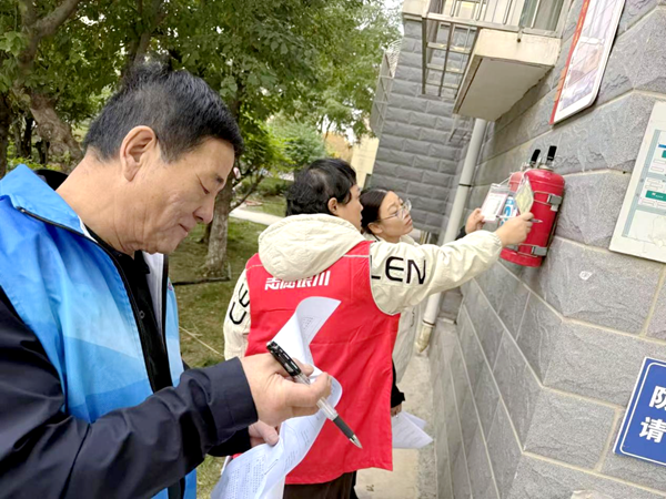“张阿姨,您每天买菜必经的2号楼外墙,有个灭火器咱们得瞅瞅,压力够不够得看准绿区!”网格员邹婷的话一落,几人就踮着脚围了上去。王叔叔查消防有自己的经验:“你看这铅封没断、压力表指针在绿区,就还算攒劲,但得摇一摇,别里头干粉结块了。”一旁的张阿姨点头:“以前总觉得这玩意儿是摆设,现在跟着查才明白,这就是咱家门口的‘救命罐’!”