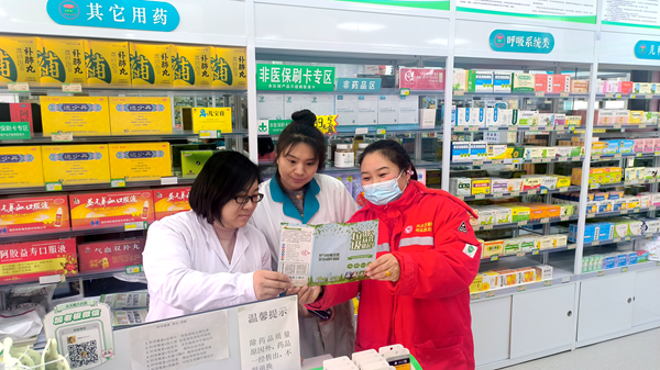 在辖区药店,身穿红马甲的党员志愿者主动担任“垃圾分类讲解员”,结合药店经营实际,重点向工作人员讲解过期药品、医疗包装等特殊垃圾的正确分类与投放要求。志愿者明确说明,过期药品属于有害垃圾,应投放到专用收集容器;药盒、药瓶等可回收包装需清洁后投入可回收物桶内,并对店员提出的疑问进行了细致解答。