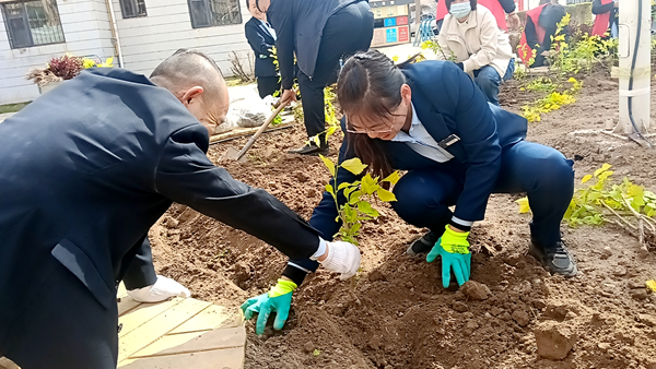 活动现场,党员先锋服务队的旗帜迎风飘扬,大家热情高涨、分工协作。有的挥锹铲土、有的扶苗定植、有的培土压实,每一个环节都一丝不苟。社区工作人员和物业人员相互配合,将一株株树苗稳稳栽种到树坑中。志愿者们则仔细清理周边杂草,确保种植区域整洁有序。