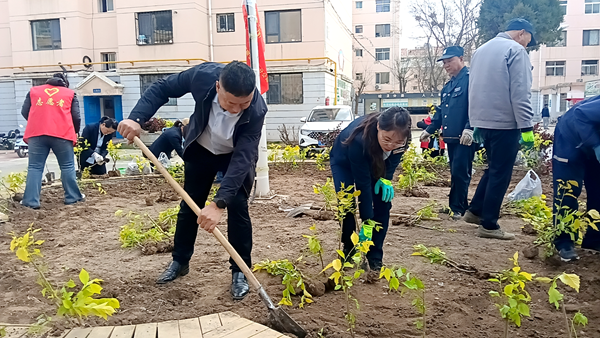 春风催新绿,植绿正当时。近日,胜利街祥和社区联合卓达物业公司,组织社区工作人员、党员、治保委员、志愿者开展“为小区添色彩”绿化种植活动,充分发挥党员先锋模范作用,共同为小区增添绿意。
