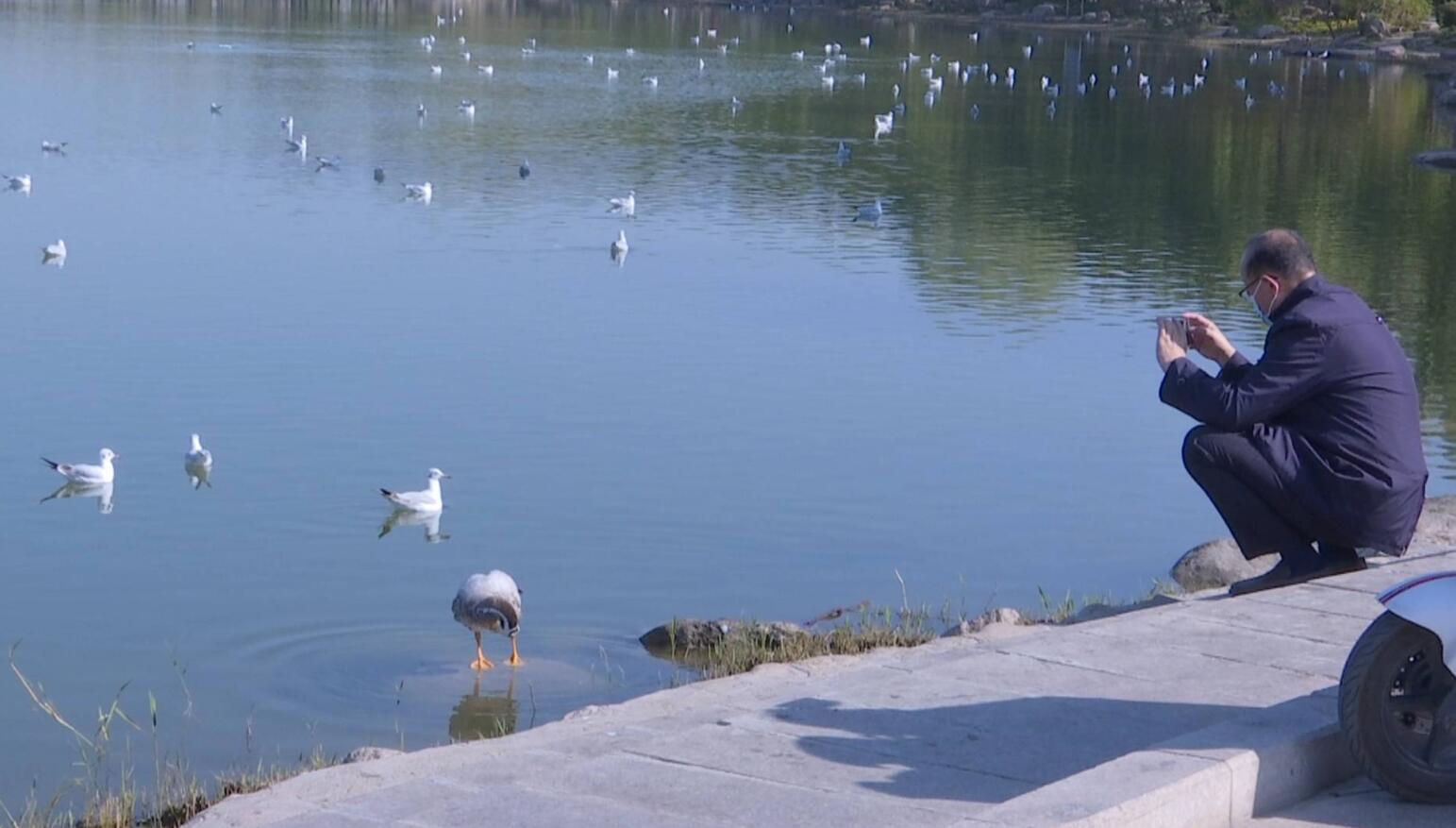 因为红嘴鸥,周边的市民在闲暇时都会特意来观鸟,拿出备好的粮食喂饱这些小家伙的肚皮,守候关爱这些可爱的精灵。