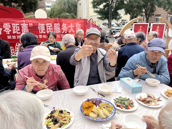 百家宴环节,十五张长桌依次排开,由社区及商务厅提供的丰盛菜品香气四溢。居民们围坐在一起品尝着美味佳肴,畅谈着家常琐事。“这比在家里一个人吃饭热闹多了,认识了这么多邻居,感觉社区就像一个大家庭。”刚搬来不久的李平大爷感慨道。现场还开展了中医诊脉、牙科检查等健康咨询服务,以及防范电信诈骗宣传等公益活动。