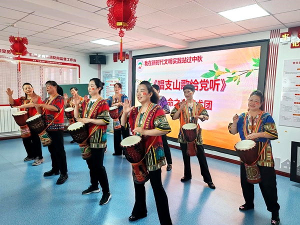 文艺汇演在热烈的掌声中拉开帷幕。来自社区生命之光艺术团的成员率先登场,以一曲《再唱山歌给党听》点燃全场热情,响亮的鼓声饱含对党的感恩与对祖国的祝福;香韵舞团带来的《精忠报国》舞姿刚劲,尽显中华儿女的家国豪情,大学生们拿出手机记录,不时为舞者的精彩动作欢呼,年轻的脸庞上洋溢着热血与激情;古琴知音传承班则献上乐器盛宴,独奏《枉凝眉》婉转悠扬,合奏《云水禅心》《卧龙吟》空灵静谧,老人们闭上双眼静静聆听,脸上满是惬意,仿佛在旋律中回忆过往岁月。