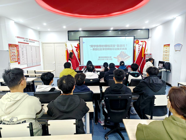 为筑牢大学生群体金融安全防线,破解“同学推荐的赚钱项目到底靠谱吗”的困惑,景园社区于10月10日开展大学生非法集资专项宣传活动,吸引辖区内20余名在校大学生参与。