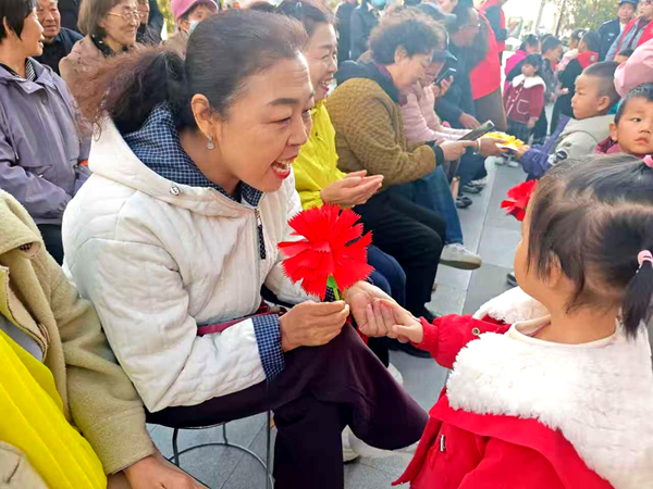 “爷爷,这束鲜花送给您。”“今天这免费义诊、手工花茶真不错。”10月29日,在大新镇湖韵社区活动现场,银川市兴庆区第十七幼儿园小朋友的童言稚语搭配着居民的赞叹声,让重阳佳节的暖意直抵人心。在这个敬老爱老的传统节日里,大新镇湖韵社区打包送上“服务大礼包”,将情感关怀、便民实事、趣味互动、安全守护等一网打尽,用满满诚意彰显基层治理智慧,让社区烟火气越燃越旺。