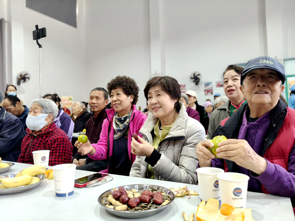 茶桌旁的“甜”,是邻里唠嗑的温情。文艺汇演一落幕,长桌上就摆上了蜜桔、花生、红枣——都是老人们爱吃的“软乎嘴”零食。“来,王姐,尝尝这枣,甜得很!”张秀琴阿姨给邻座的徐阿姨递了颗红枣,两人就着热茶聊起了家常。“平时各忙各的,难得这么多人坐在一起说话,跟一家人似的!”陈玉华奶奶剥着橘子笑,“社区想得细,连茶水都是热的红枣茶,喝到嘴里暖到心里。”