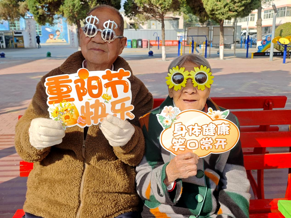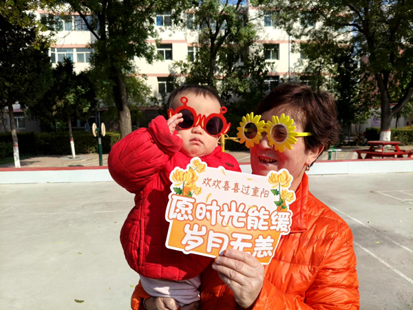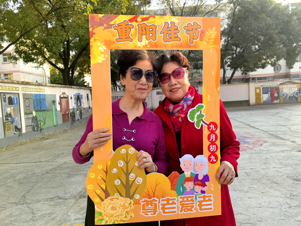 镜头前的“甜”,是幸福瞬间的定格。最热闹的要数拍照打卡区,“重阳佳节”的橙色相框前,老人们戴着向日葵眼镜、举着“最美夕阳红”的标语牌,笑得眼睛眯成缝。“阿姨,头再歪点,笑得再开点!”社区工作人员郭佳瑜举着手机耐心引导,刚拍好没多久,洗印好的照片就送到了老人手里。“你看我这精神头,不比年轻时候差!”马瑞华阿姨举着照片,掏出手机就给女儿发视频,语气里满是骄傲。