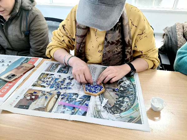 作品展示环节更是亮点纷呈。居民们纷纷将自己的青花杯垫摆放至展示区,每一件作品都承载着创作者的心意。大家轮流介绍创作理念,分享参与活动的感受,“平时很少有机会接触传统手工艺,这次亲手制作青花杯垫,不仅学会了新技能,还认识了隔壁邻居,特别有意义”,居民孟女士的话道出了不少人的心声。