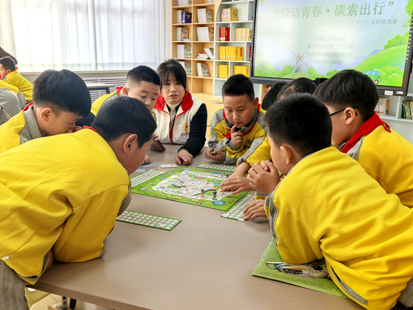 “我学会了优先选择公共交通或骑行!”“原来垃圾分类和资源回收能为城市减少这么多负担!”11月25日,银古路街道丽景社区联合兴庆区第二十三小学,开展了一场由宁夏红十字基金会支持的“绿动青春・碳索出行”青少年低碳出行桌游挑战赛。在趣味桌游的脑力角逐中学习低碳知识,在团队协作中践行环保理念,让绿色种子在青春心田生根发芽。