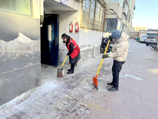 群众诉求无小事,社区工作人员接到反映后,第一时间响应,迅速携带铁锹、扫帚等工具赶赴结冰路段。到达现场后,工作人员用铁锹奋力铲除路面厚实的冰层,有的用扫帚清理散落的碎冰和积水,在铲冰过程中,社区工作人员还不忘关注过往居民的出行情况,对行动不便的老人主动上前搀扶,护送其安全通过无冰路段。经过一个多小时的紧张作业,结冰路段的冰层被彻底清理干净,有效消除了出行安全隐患。