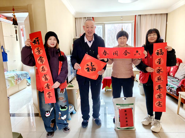 “张叔,快过年了,我们来看看您,给您送点面粉和对联,祝您身体健康、新年快乐!”在高龄老人张大爷家中,社区工作人员小李一边将慰问品递到老人手中,一边亲切地握住老人的手。张大爷今年已经88岁,子女在外地工作,独自居住。看到社区工作人员上门,他笑得合不拢嘴:“你们工作这么忙还总惦记着我,这面真及时,过年包饺子用得上!”