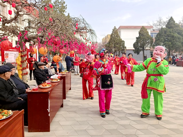 “今年的社火真热闹,这大头娃娃看着真喜庆啊!”2月27日下午,胜利街天盛社区市军休所小区活动中心暖意盎然、喜乐满堂,辖区居民们脸上洋溢着节日的笑容。