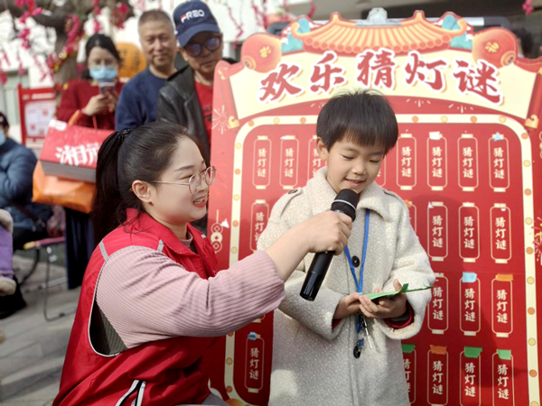 灯谜区更是人气爆棚。字谜、成语谜、生活常识……有简单的,也有费脑子的,居民们凑在一起你一言我一语,有的低头琢磨,有的互相提醒。“猜灯谜是我们老一辈最爱的传统!”退休老干部郭文宇拿着猜对的灯谜兑换小礼品,笑得像个孩子一样:“既能动动脑子,又能跟老邻居聊聊天。社区办这样的活动,不光丰富了我们的晚年生活,更把邻里感情拉近了,整个小区就像一个大家庭,和睦又暖心。”