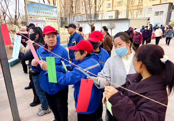 塔桥家园小广场变身“灯谜乐园”。五彩斑斓的趣味谜语,内容涵盖传统文化、生活常识、科普知识等多个领域,既有通俗易懂的趣味谜题,也有需要细细琢磨的“烧脑”难题。居民们或独自凝神思索,或三五成群地讨论,现场气氛热烈而欢快。猜对谜底的居民还获得了小礼品,大家脸上洋溢着满足的笑容。