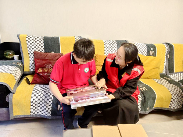 马小小是景园社区的困境儿童,存在语言障碍,但对美术有着浓厚兴趣,美术彩铅是他抒发情感、展开艺术表达的重要载体。当天,社区志愿者们带着精心准备的72色美术彩铅礼盒与新衣服来到马小小家中,与他温馨互动。志愿者们和小刚一同展示彩铅礼盒,交流彩铅创作的乐趣;随后又细致地为小刚试穿新衣服,帮他整理衣襟,现场氛围满是温暖。