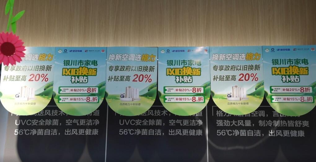 10月1日,记者来到兴庆区新百电器东方红店看到,“超核补贴 政企双补30%” “最高补贴3000元”“以旧换新”等字样的海报十分醒目,不时有消费者前来咨询,销售人员在一旁热心介绍。