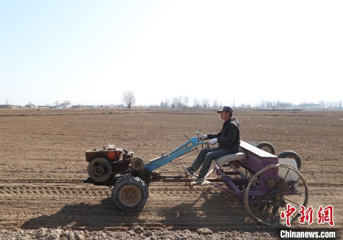 3月6日,银川市兴庆区通南村,农民开着农用车在田间平整土地。随着气温回暖,宁夏各地进入春耕季节,当地农户抢抓农时,翻土、平地、施肥......田间地头奏响了春耕序曲。中新社记者 于晶 摄