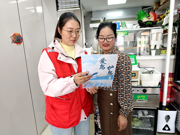 随后,志愿者们深入辖区餐饮商铺发放宣传单,引导商户抵制野味,做到不采购、不加工、不销售野生鸟类及其制品;同时向居民普及保护知识,呼吁杜绝猎捕、买卖、食用野生动物行为,营造群防群治的保护氛围。