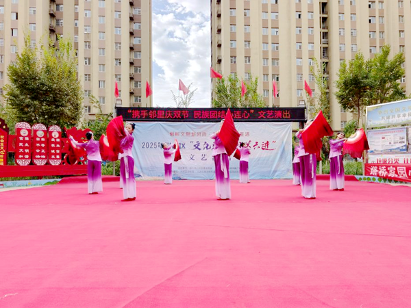 文艺汇演精彩纷呈,共筑民族团结情。活动在激昂的开场舞《我爱你中国》中拉开帷幕,表演者以热情的舞姿表达对祖国的深情祝福。随后,女声独唱、京剧豫剧选段、配乐诗朗诵等节目轮番上演。其中诗朗诵《读中国》声情并茂抒发家国情怀,赢得观众阵阵掌声。整场演出高潮迭起,既展现了居民的多才多艺,更让“民族团结一家亲”的理念深入人心。