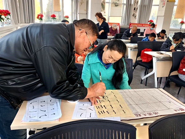 二期课堂上,学员们带着首期练习成果而来,学习热情更加高涨。林老师结合大家的课后作业,针对性讲解笔画衔接、结构布局等进阶技巧,一边示范“横画呼应、竖画对齐”的章法要点,一边耐心解答“如何让字更舒展”“墨色怎么控制”等疑问。活动室里,孩童与长者同坐一堂,笔尖在宣纸上落下沙沙声响,既有专注临摹的身影,也有邻里间交流心得的温馨场景,原本陌生的居民因书法结缘,让烟火社区浸润着浓浓的文化雅韵。“首期学了基础笔画,二期跟着老师练结构,一步步进阶特别有成就感,社区的公益班真是办到了我们心坎里!”二期学员段瑞娟说道。