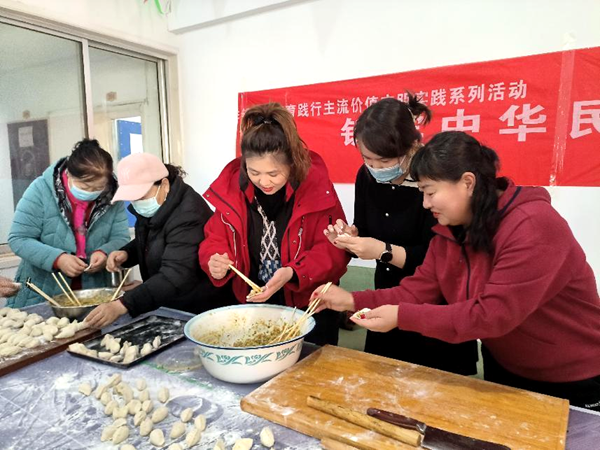 活动现场,工作人员、志愿者与居民们围坐在一起,纷纷挽起袖子,投入到包饺子的欢乐氛围中。大家分工明确,配合默契,有的负责擀皮,有的负责包馅,有的负责摆放。一双双巧手上下翻飞,不一会儿,一个个饱满圆润、形态各异的饺子便摆满了盘子。在包饺子的过程中,大家一边交流着包饺子的技巧,一边分享着生活中的趣事,欢声笑语回荡在整个活动室,浓浓的邻里情在饺子香中不断升温。