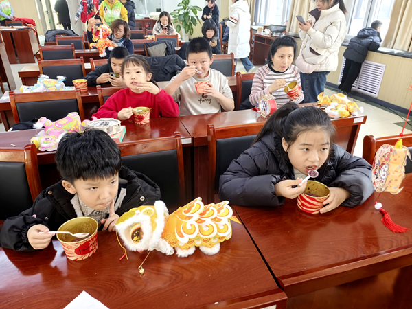 亲子互动环节成为活动的“欢乐引擎”。熬粥区内,工作人员一边搅拌翻滚的腊八粥,一边讲述节日习俗:“这碗粥寓意五谷丰登、团圆美满,今天我们一起传承这份千年文化。”孩子们品尝亲自参与熬制的粥,脸上写满满足。灯笼制作区同样热闹,亲子搭档默契配合,制作出憨态可掬的狮子灯笼、灵动活泼的小马灯笼。当灯笼亮起温暖光芒,孩子们围拢赞叹,亲子亲情与公益精神在指尖悄然传递。