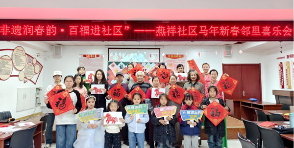 “春风得意马蹄疾,一日看尽长安花!”“好!下一个!”伴随掌声与欢笑,一句句带着“春”与“马”的诗词在燕祥社区上空飞扬。2月11日,燕祥社区一片红火热闹,“非遗润春韵·百福进社区”——马年新春邻里喜乐会火热开启。居民们走出家门,对诗词、套福字、写春联、剪窗花,在浓浓的传统年味中共迎马年新春。