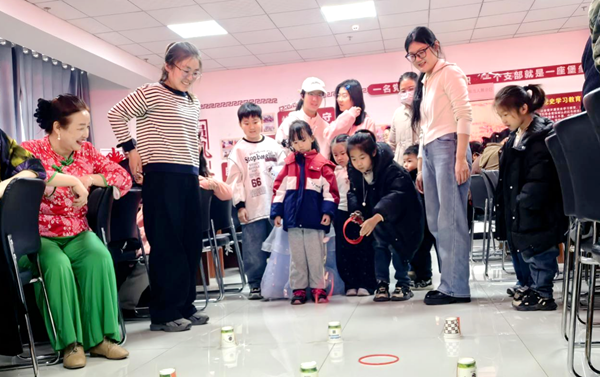 “圈‘福’气”游戏区则洋溢着童趣与惊喜。孩子们手持套圈,瞄准地上琳琅满目的“福”字道具,每一次投掷都引来阵阵喝彩。简单的游戏,不仅让孩子们乐在其中,也勾起了许多大人的童年回忆,邻里间的距离在欢声笑语中悄然拉近。