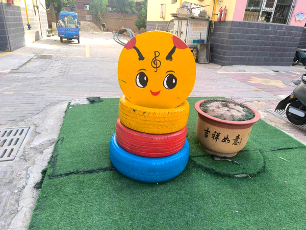 活动前期,物业集中回收了小区业主闲置的废旧轮胎,经过清洗、打磨等预处理后,一场创意改造正式开启。大家通过切割、堆叠、彩绘等方式赋予轮胎新生命。参与活动的“小小艺术家”们手持画笔,调颜料、勾轮廓、涂色彩,把黑乎乎的轮胎当作“画布”,尽情挥洒想象力。原本沾满污渍的轮胎,在孩子们的巧手下披上了鲜艳的“花衣裳”。经过连续4天的创意打磨,一件件“艺术品”新鲜出炉——黑黝黝的轮胎彻底“改头换面”,成为小区里赏心悦目的创意景观。