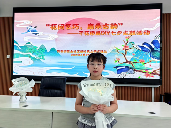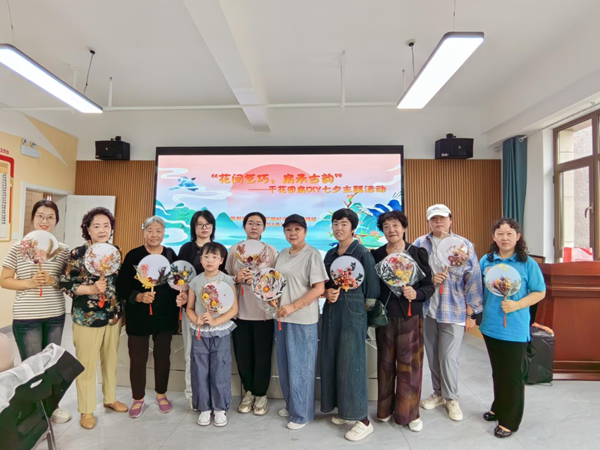 七夕今宵看碧霄,牵牛织女渡河桥。8月27日上午,胜利街紫金社区三楼会议室热闹非凡,由该社区新时代文明实践站开展的“花间乞巧,扇承古韵”七夕主题活动正式举行。