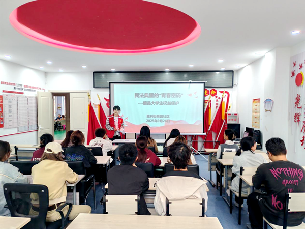 为帮助大学生群体精准掌握民法典核心内容,提升法治思维与维权能力,9月26日,景园社区以“贴合青春需求、创新学习形式”为出发点,组织开展“民法典里的‘青春密码’——细品大学生权益保护”为主题的法治宣传活动。