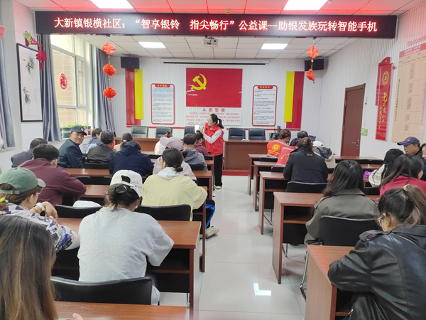 近日,大新镇银横社区联合宁夏医科大学志愿者,开展“我来教您用手机”智慧助老公益课,近30位老年居民踊跃参与,现场学习氛围浓厚。