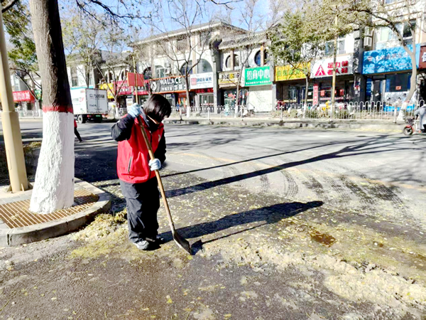 罗钰的忙碌劲儿,周边居民看在眼里、记在心里。几位热心居民二话不说,回家拿起自家工具就加入了除冰队伍。大家分工合作,有的用铁锹撬冰,有的用雪铲扫碎冰,过程中队员们还不忘对着过往行人喊一句“小心地滑,往这边走更安全”,暖心提醒不停歇。不到一小时,在网格员和居民的“默契配合”下,原本滑溜溜的结冰路面就被彻底清理干净,小区及周边路段重新恢复了安全畅通。