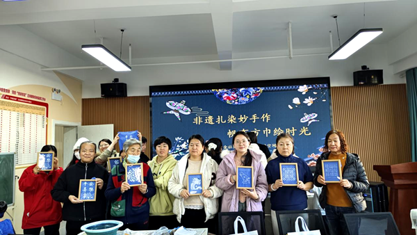 紫金社区举办“非遗扎染妙手作 帆布方巾绘时光”手工体验活动