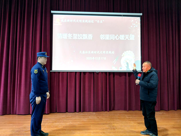 近日,天盛社区联合辖区宁夏消防机动救援队银川大队开展了主题为“情暖冬至饺飘香 邻里同心暖天盛”的冬至包饺子活动。欢声笑语驱散了冬日严寒,让居民们在热气腾腾的烟火气中,真切感受到社区大家庭的温暖与关怀。