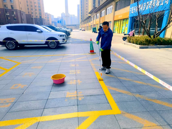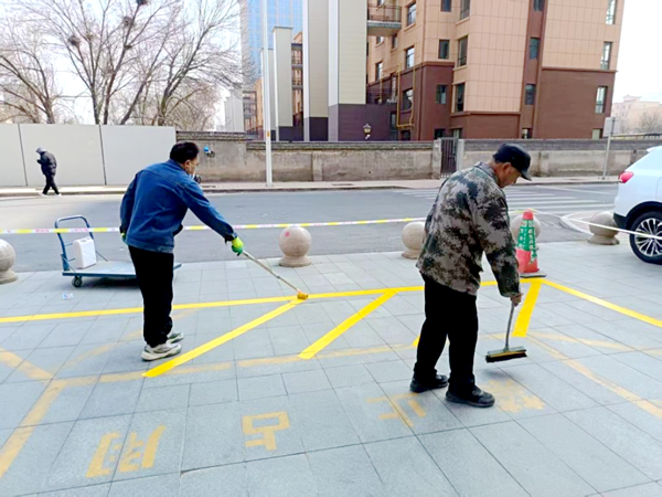 本次整治重点对小区内大门口和主干道磨损、模糊的消防车通道标识进行全面重新施划。工作人员严格按照标准丈量尺寸,补全缺失标线,确保通道标识清晰、规范、醒目。